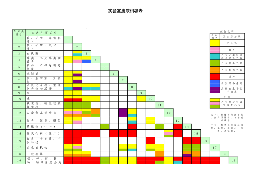 实验室废液相容表